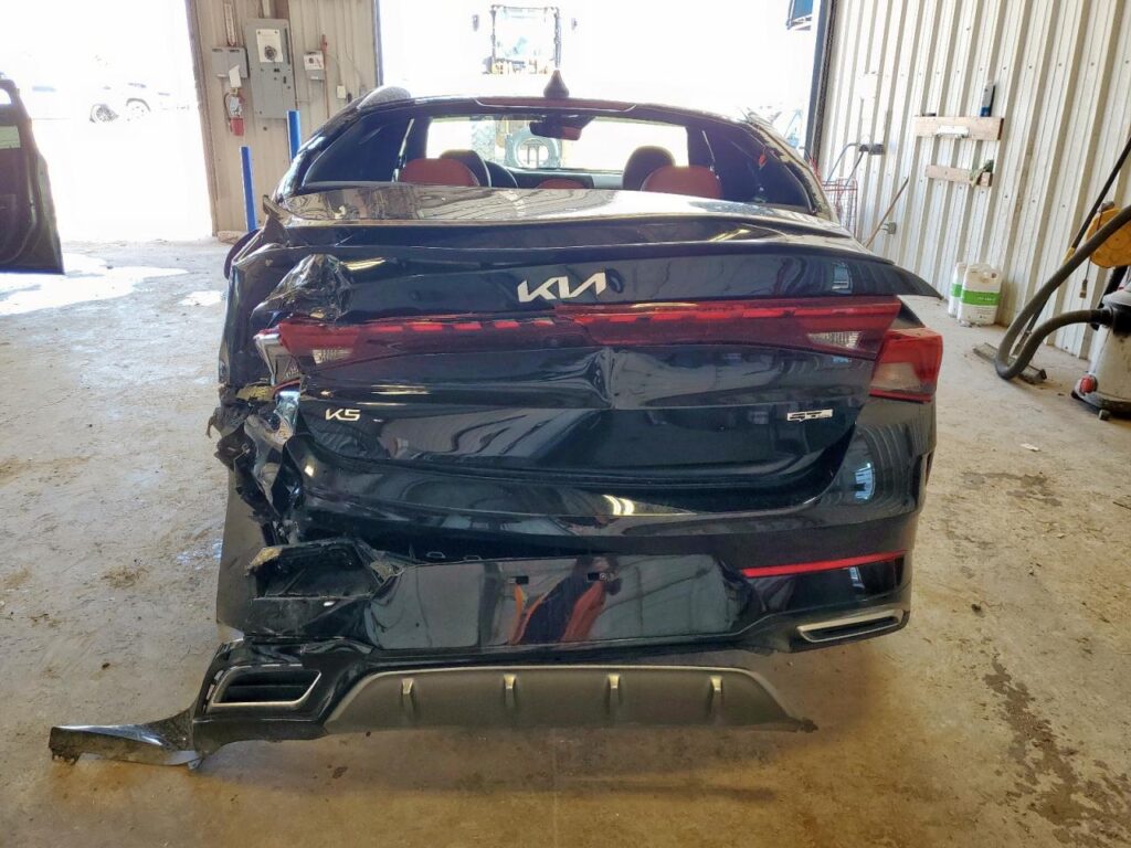 This 2024 Kia K5 (Black) is equipped with an engine designed to balance performance and efficiency. According to the auction listing, the vehicle had 23,084 miles at the time of sale.