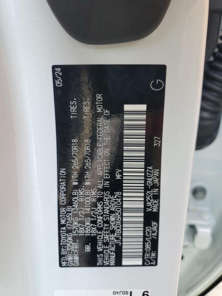 This 2024 Lexus GX (White) comes from a major insurance auction in the USA or Canada. All information on this page is linked to the vehicle’s VIN (JTJTBCDX6R5010478), which helps confirm where the car was listed and what condition it was in at the time of sale.