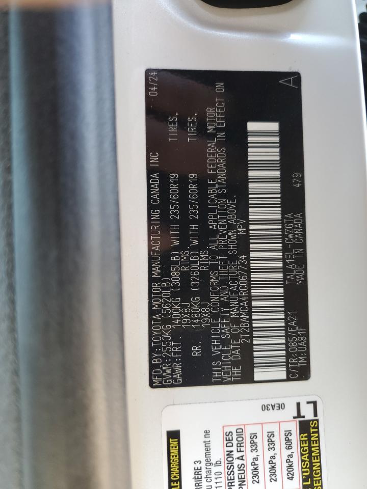 This 2024 LEXUS RX350 (WHITE) comes from a major insurance auction in the USA or Canada. All information on this page is linked to the vehicle’s VIN (2T2BAMCA4RC067734), which helps confirm where the car was listed and what condition it was in at the time of sale.