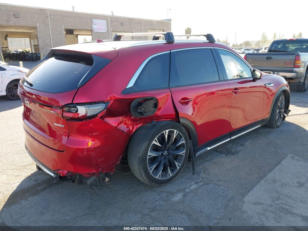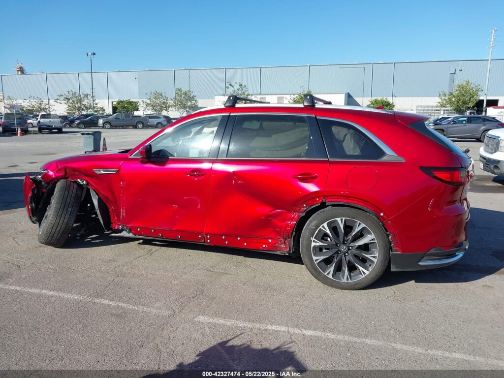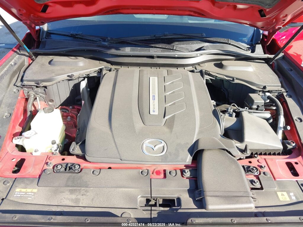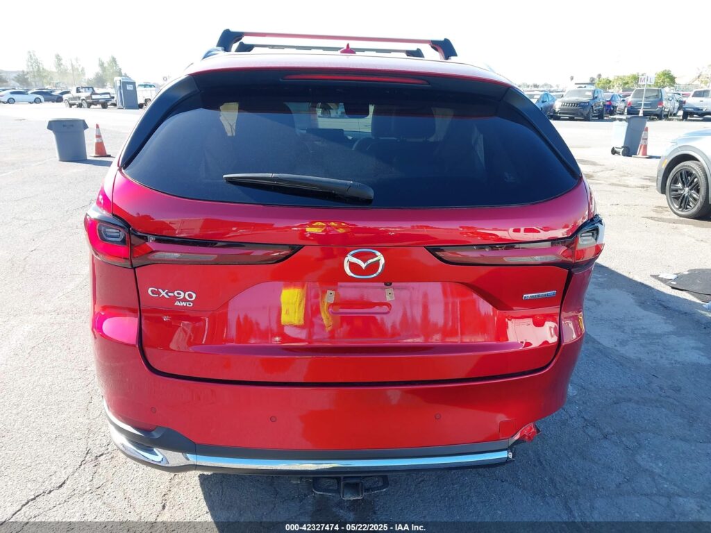 This 2024 Mazda CX-90 (Red) is equipped with an engine designed to balance performance and efficiency. According to the auction listing, the vehicle had 14,434 miles at the time of sale.