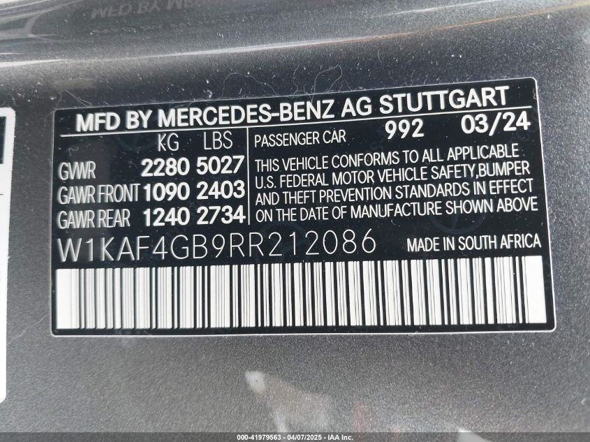 VIN: W1KAF4GB9RR212086