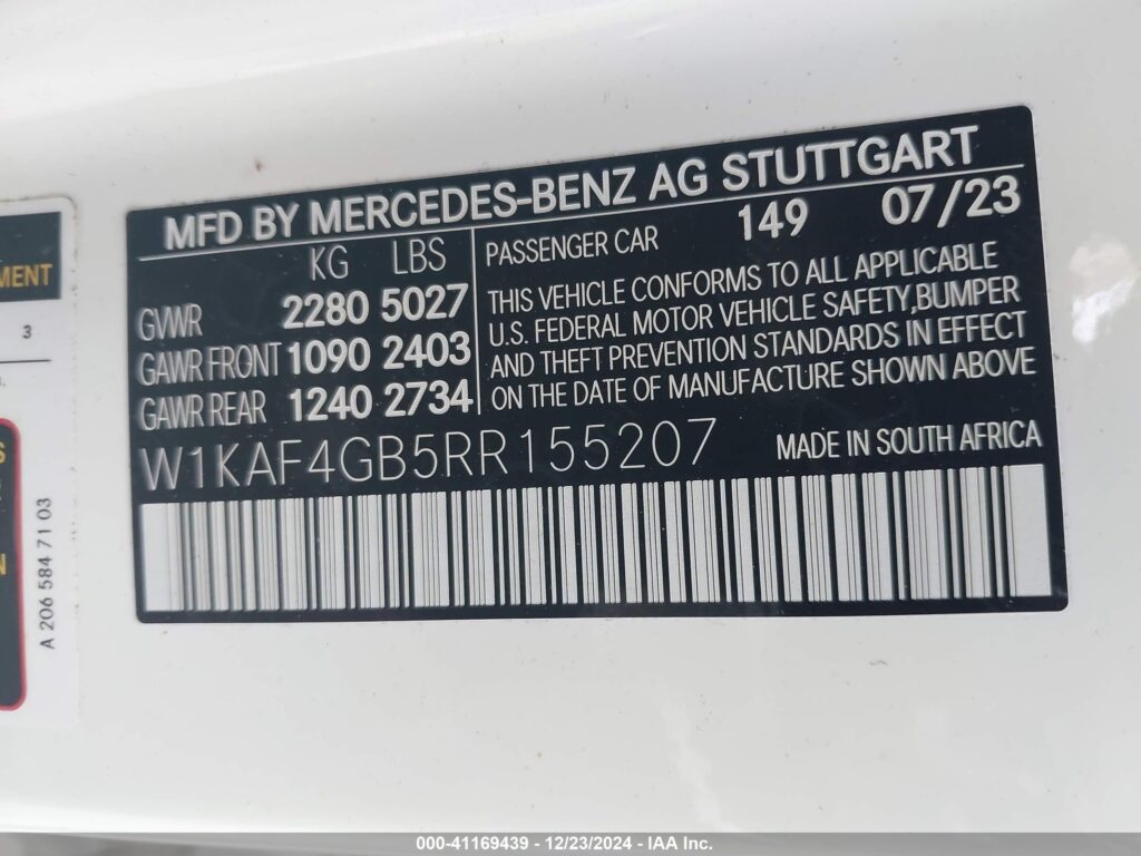 | VIN Number | W1KAF4GB5RR155207 |