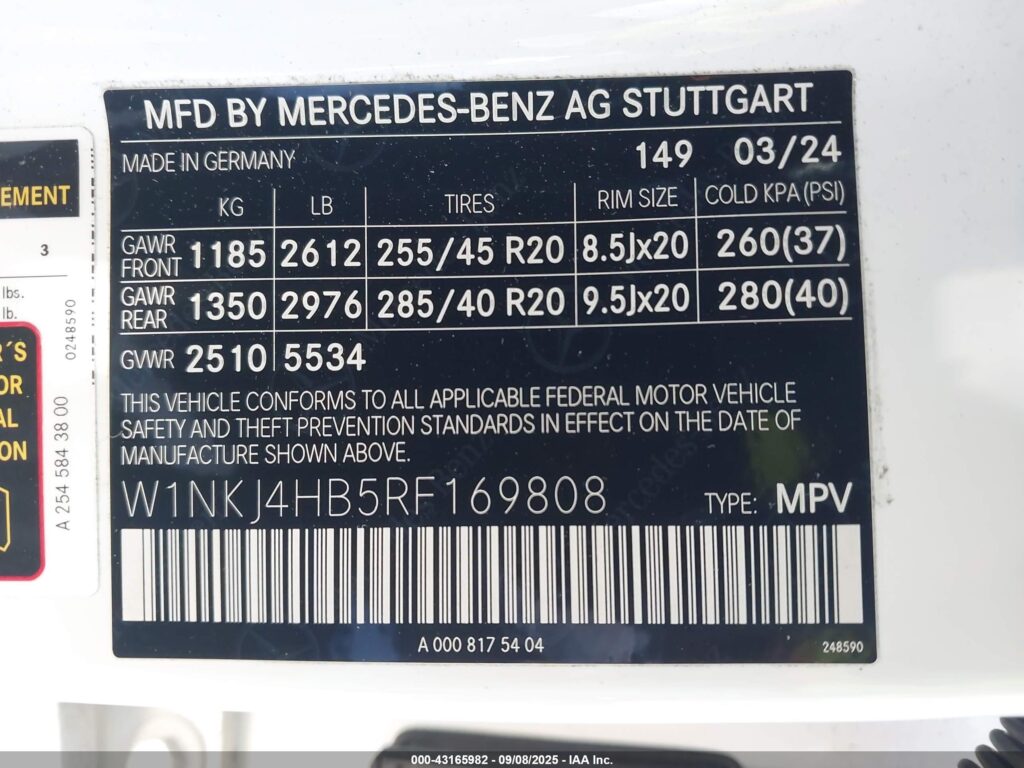 | VIN Number | W1NKJ4HB5RF169808 |
