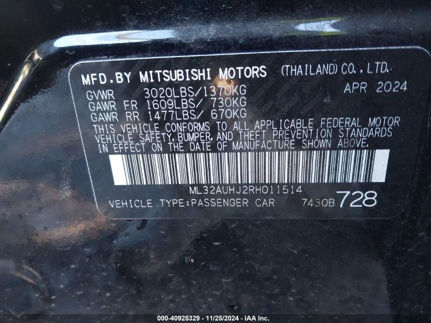 2024 MITSUBISHI MIRAGE – ML32AUHJ2RH011514