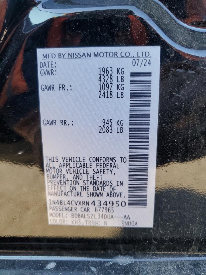 This 2024 NISSAN ALTIMA (BLACK) comes from a major insurance auction in the USA or Canada. All information on this page is linked to the vehicle’s VIN (1N4BL4CVXRN434950), which helps confirm where the car was listed and what condition it was in at the time of sale.