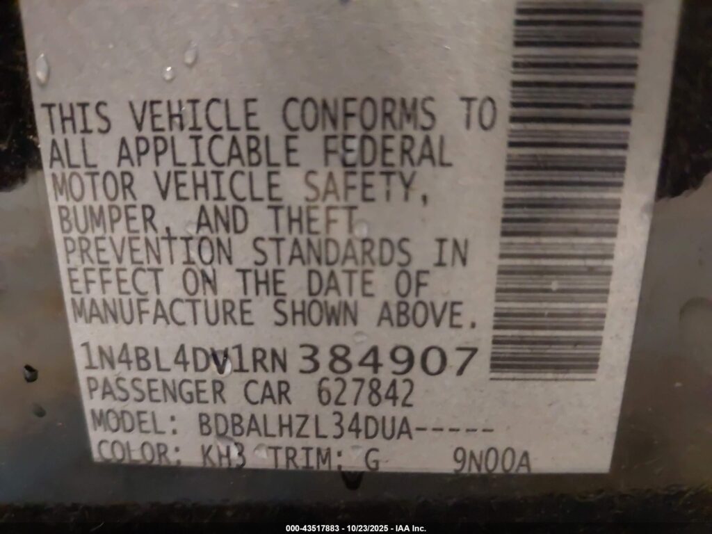 This 2024 Nissan Altima (Black) comes from a major insurance auction in the USA or Canada. All information on this page is linked to the vehicle’s VIN (1N4BL4DV1RN384907), which helps confirm where the car was listed and what condition it was in at the time of sale.