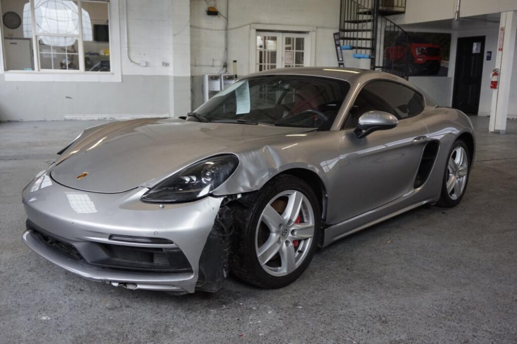This 2024 Porsche Cayman (Silver) is equipped with an engine designed to balance performance and efficiency. According to the auction listing, the vehicle had 3,638 miles at the time of sale.