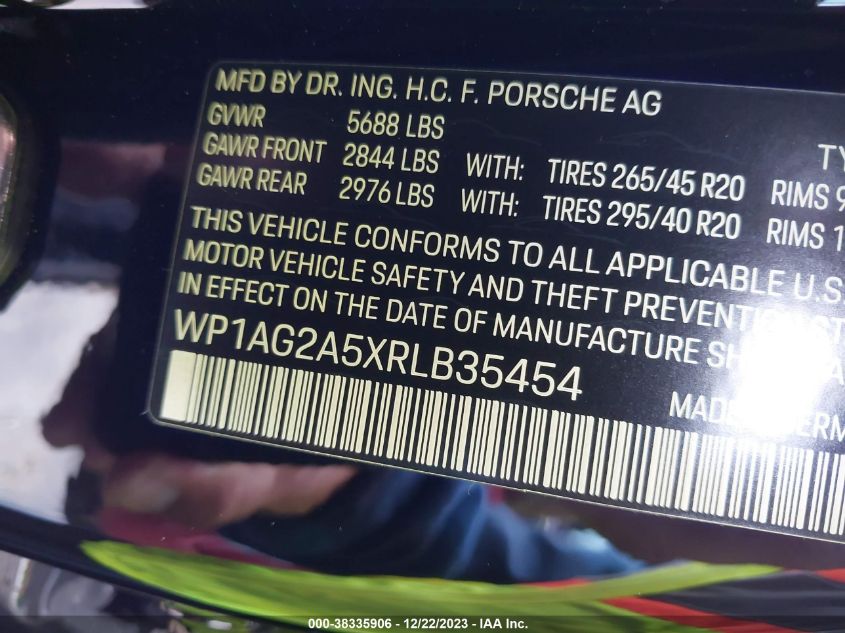 This 2024 Porsche Macan (Black) comes from a major insurance auction in the USA or Canada. All information on this page is linked to the vehicle’s VIN (WP1AG2A5XRLB35454), which helps confirm where the car was listed and what condition it was in at the time of sale.