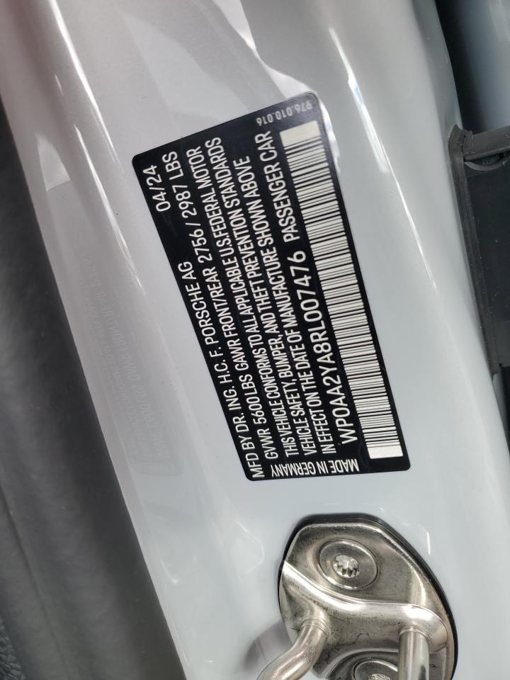 | VIN Number | WP0AA2YA8RL007476 |