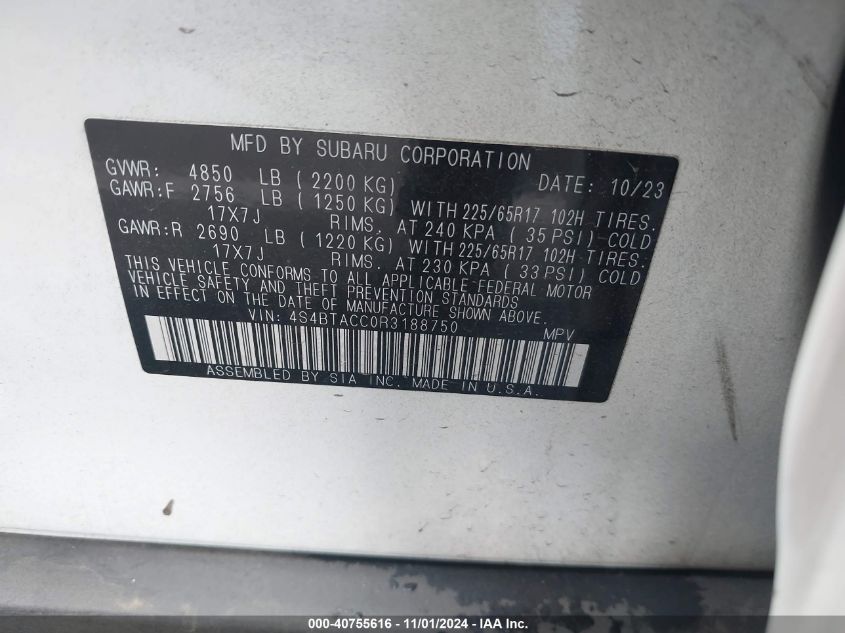 2024 SUBARU OUTBACK – 4S4BTACC0R3188750