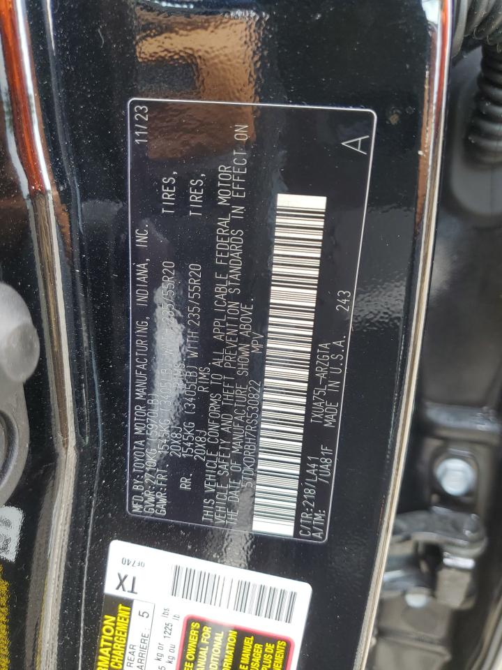 | VIN Number | 5TDKDRBH7RS530822 |