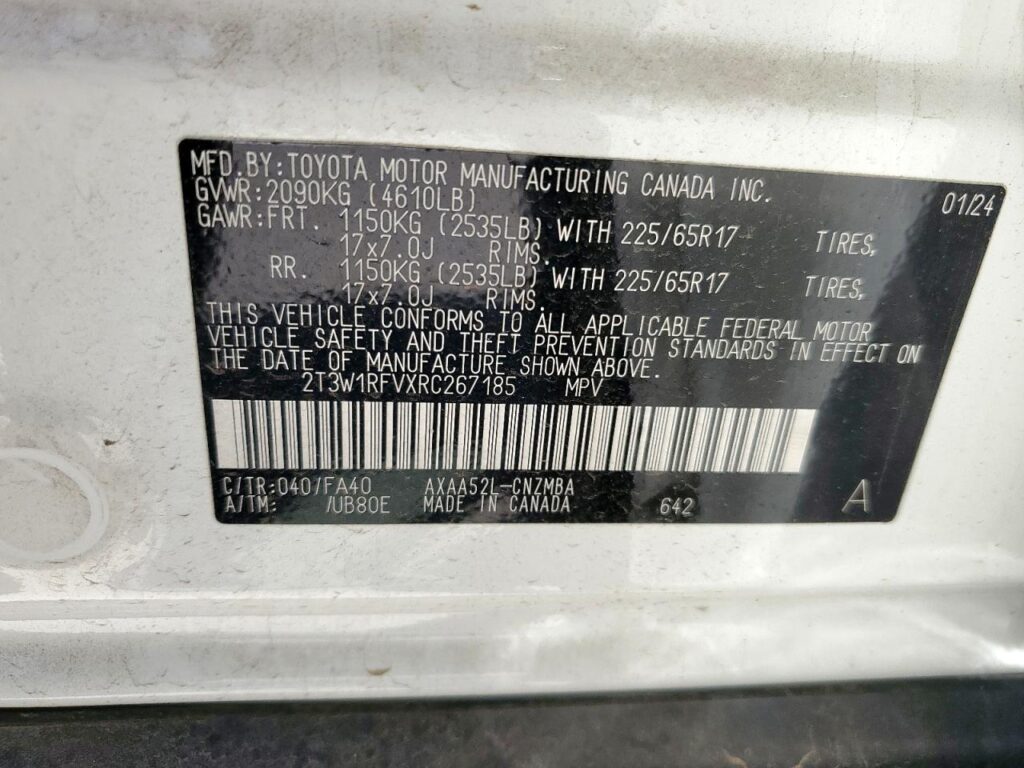VIN: 2T3W1RFVXRC267185