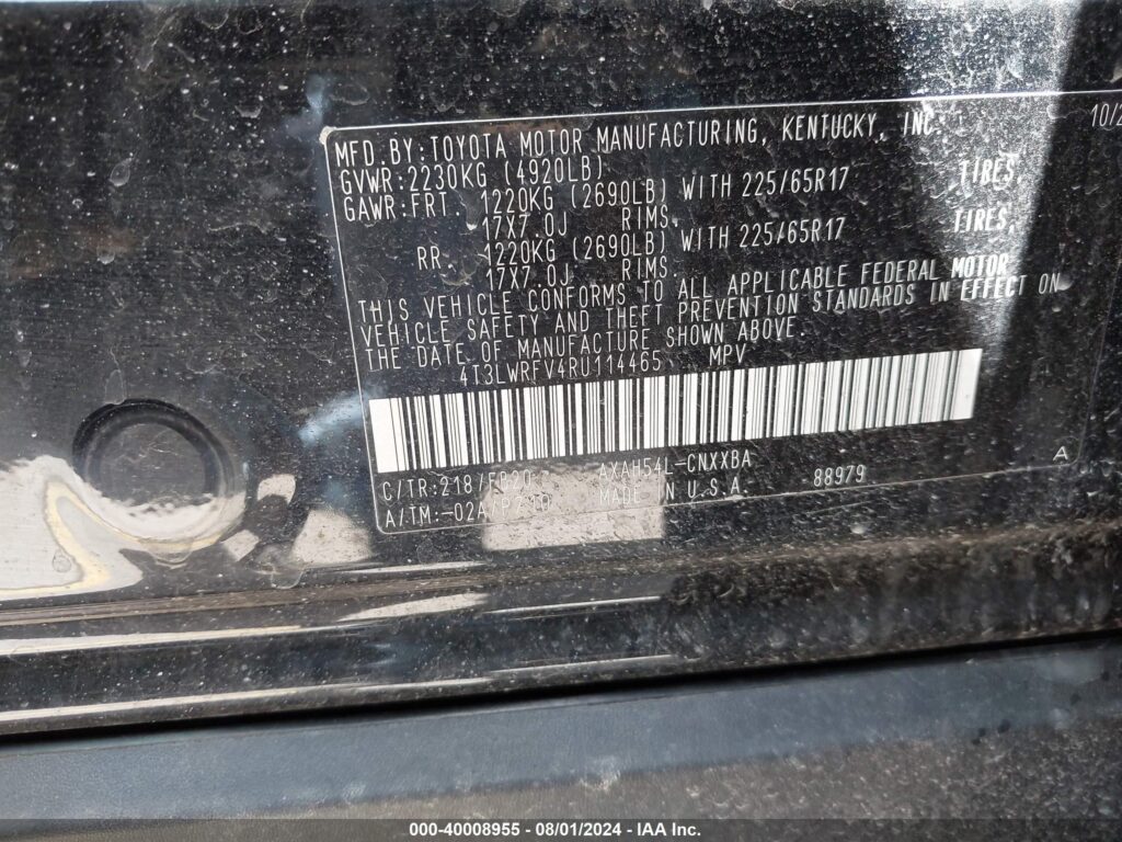 This 2024 Toyota Rav4 Hybrid (Black) comes from a major insurance auction in the USA or Canada. All information on this page is linked to the vehicle’s VIN (4T3LWRFV4RU114465), which helps confirm where the car was listed and what condition it was in at the time of sale.