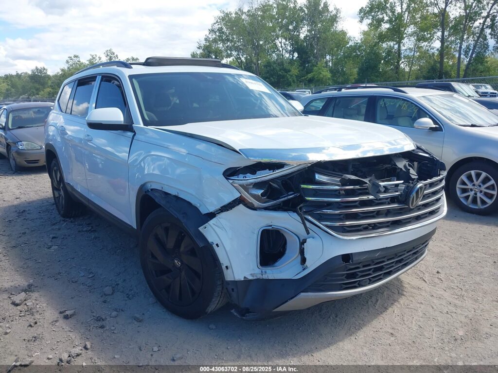 This 2024 Volkswagen Atlas (White) is equipped with an engine designed to balance performance and efficiency. According to the auction listing, the vehicle had 130,277 miles at the time of sale.