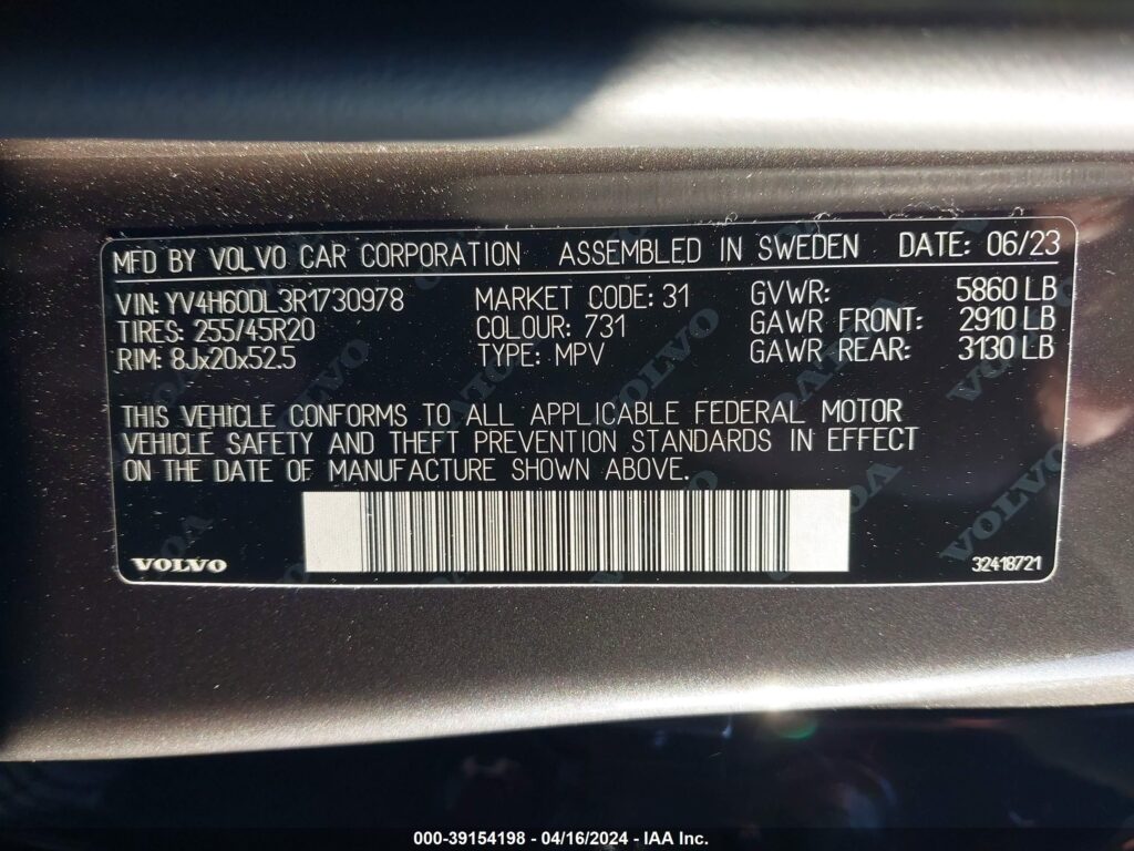 This 2024 Volvo XC60 Recharge (Grey) comes from a major insurance auction in the USA or Canada. All information on this page is linked to the vehicle’s VIN (YV4H60DL3R1730978), which helps confirm where the car was listed and what condition it was in at the time of sale.