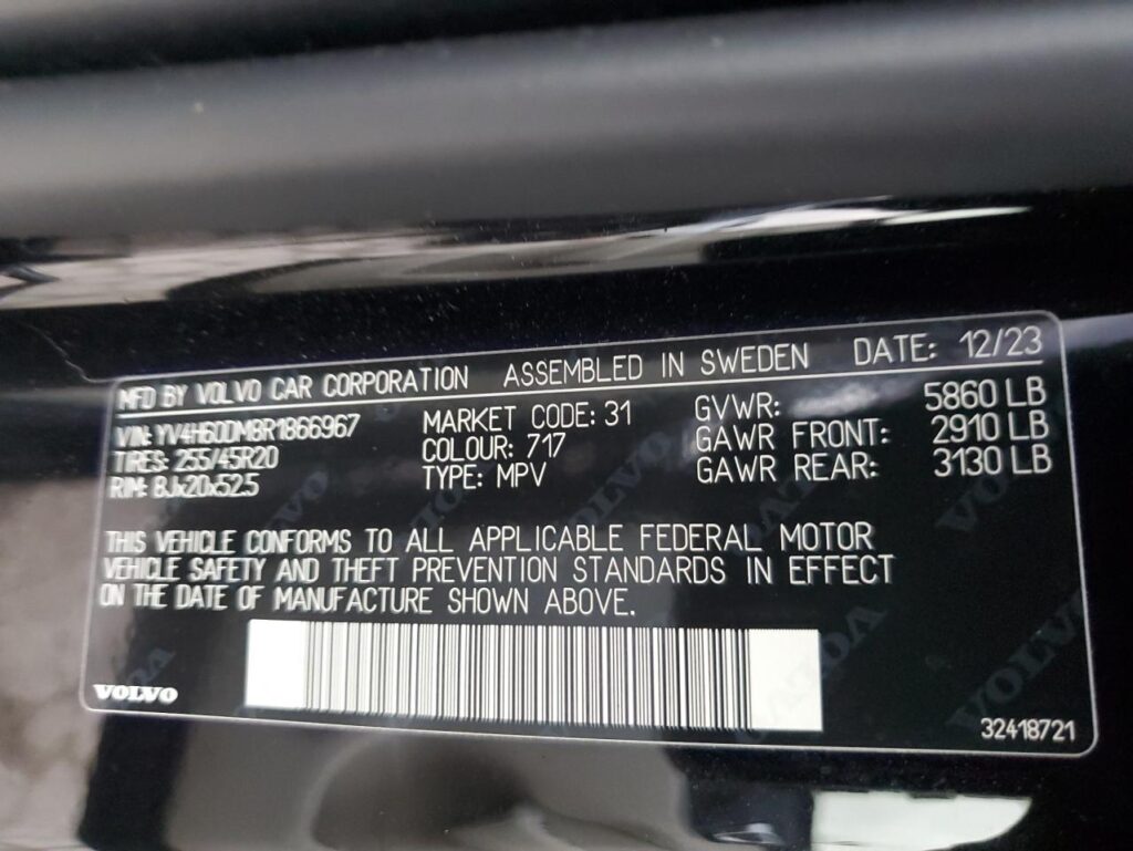 This 2024 Volvo XC60 (Black) is equipped with an engine designed to balance performance and efficiency. According to the auction listing, the vehicle had 330 miles at the time of sale.