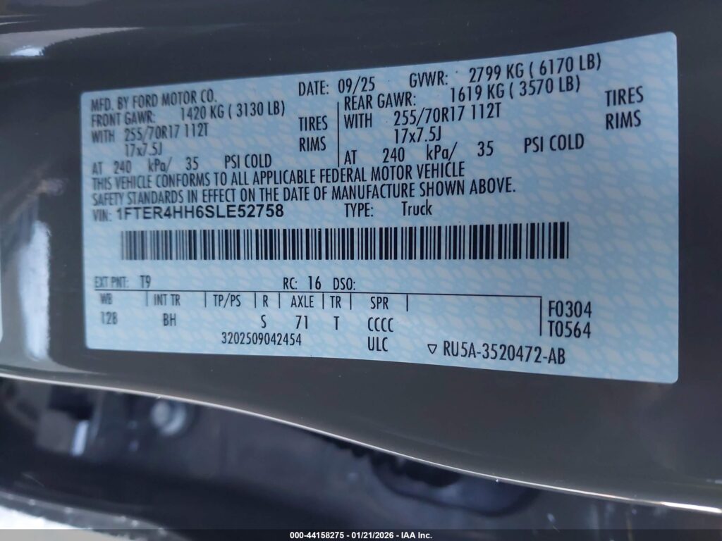 | VIN Number | 1FTER4HH6SLE52758 |