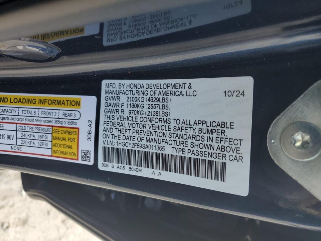 | VIN Number | 1HGCY2F89SA011365 |