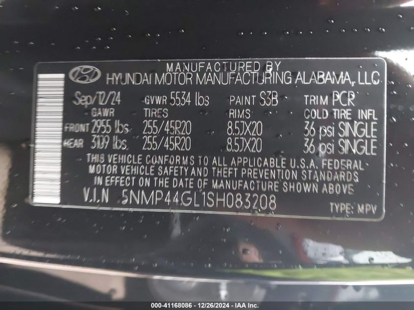 This 2025 HYUNDAI SANTA FE (Unknown Color) comes from a major insurance auction in the USA or Canada. All information on this page is linked to the vehicle’s VIN (5NMP44GL1SH083208), which helps confirm where the car was listed and what condition it was in at the time of sale.