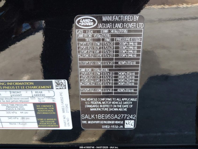 VIN: SALK1BE95SA277242