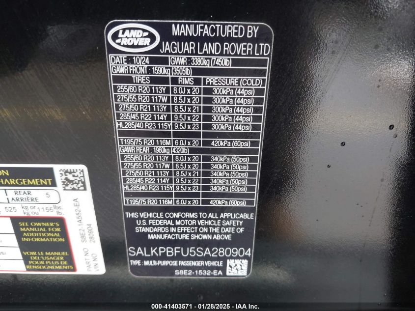 | VIN Number | SALKPBFU5SA280904 |