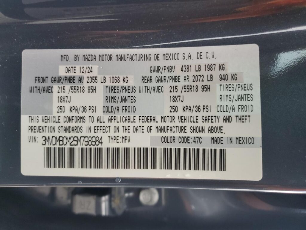 This 2025 Mazda CX-30 (Grey) comes from a major insurance auction in the USA or Canada. All information on this page is linked to the vehicle’s VIN (3MVDMBCM2SM798984), which helps confirm where the car was listed and what condition it was in at the time of sale.