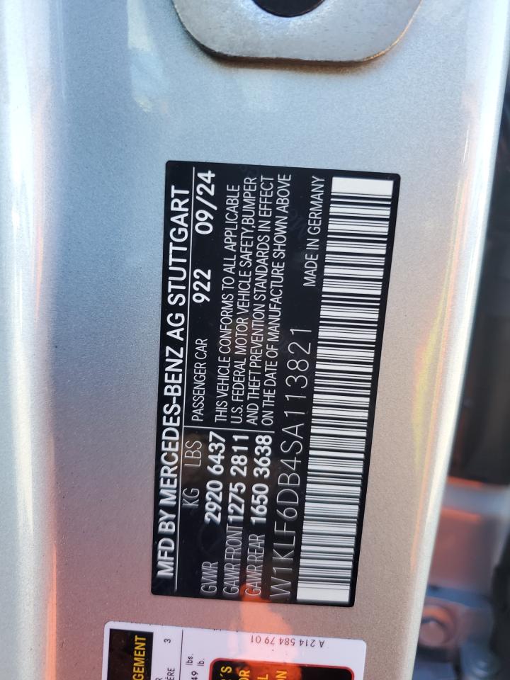 This 2025 Mercedes-Benz E (Silver) comes from a major insurance auction in the USA or Canada. All information on this page is linked to the vehicle’s VIN (W1KLF6DB4SA113821), which helps confirm where the car was listed and what condition it was in at the time of sale.