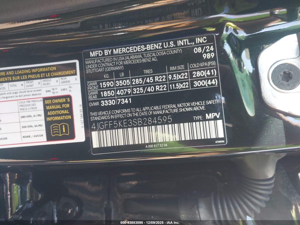This 2025 Mercedes-Benz GLS-Class (Green) comes from a major insurance auction in the USA or Canada. All information on this page is linked to the vehicle’s VIN (4JGFF5KE3SB284595), which helps confirm where the car was listed and what condition it was in at the time of sale.