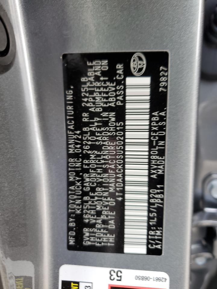 This 2025 TOYOTA CAMRY (GRAY) comes from a major insurance auction in the USA or Canada. All information on this page is linked to the vehicle’s VIN (4T1DAACK0SU502015), which helps confirm where the car was listed and what condition it was in at the time of sale.