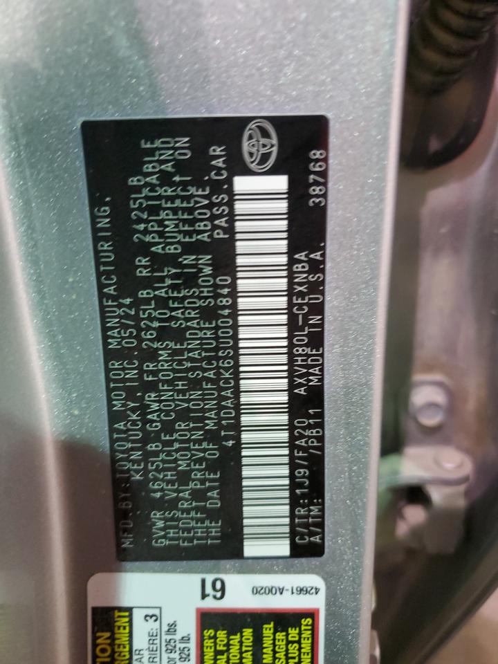 This 2025 TOYOTA CAMRY (SILVER) comes from a major insurance auction in the USA or Canada. All information on this page is linked to the vehicle’s VIN (4T1DAACK6SU004840), which helps confirm where the car was listed and what condition it was in at the time of sale.