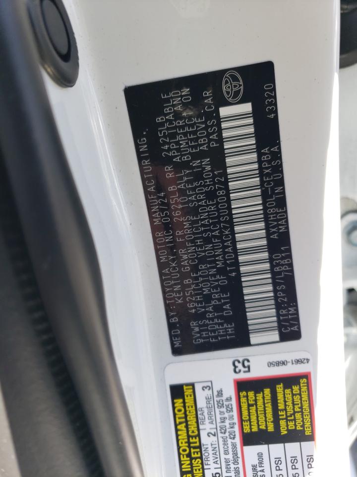 This 2025 TOYOTA CAMRY (WHITE) comes from a major insurance auction in the USA or Canada. All information on this page is linked to the vehicle’s VIN (4T1DAACK7SU008721), which helps confirm where the car was listed and what condition it was in at the time of sale.