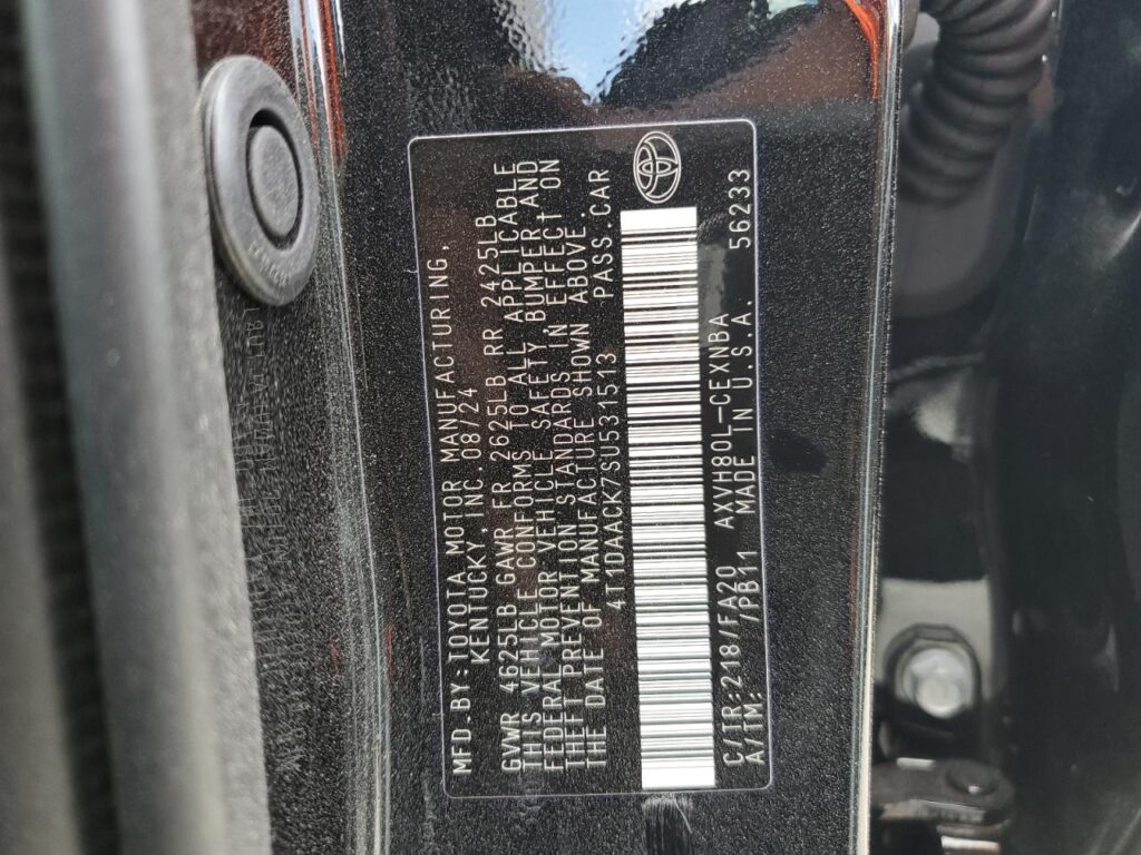 | VIN Number | 4T1DAACK7SU531513 |