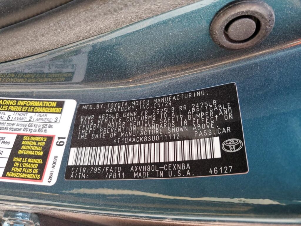 | VIN Number | 4T1DAACK8SU011112 |