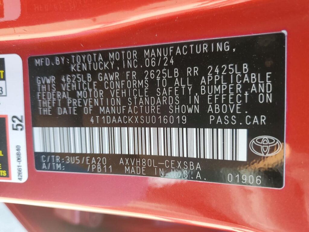 This 2025 TOYOTA CAMRY (RED) comes from a major insurance auction in the USA or Canada. All information on this page is linked to the vehicle’s VIN (4T1DAACKXSU016019), which helps confirm where the car was listed and what condition it was in at the time of sale.