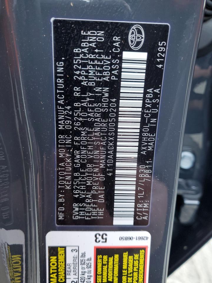 This 2025 Toyota Camry (Charcoal) comes from a major insurance auction in the USA or Canada. All information on this page is linked to the vehicle’s VIN (4T1DAACKXSU050204), which helps confirm where the car was listed and what condition it was in at the time of sale.