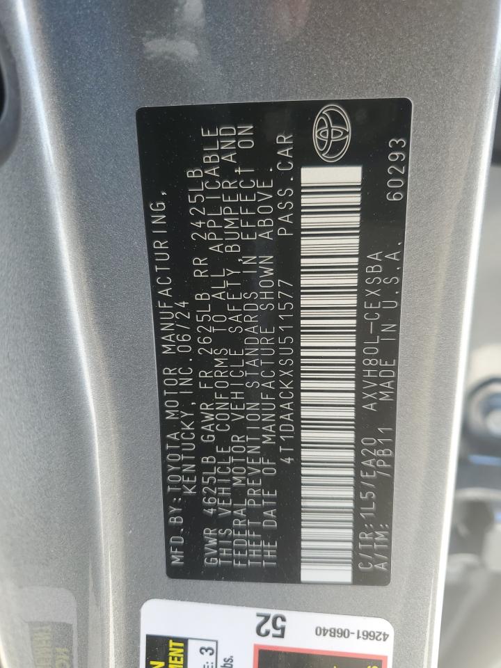 This 2025 Toyota Camry (Charcoal) comes from a major insurance auction in the USA or Canada. All information on this page is linked to the vehicle’s VIN (4T1DAACKXSU511577), which helps confirm where the car was listed and what condition it was in at the time of sale.