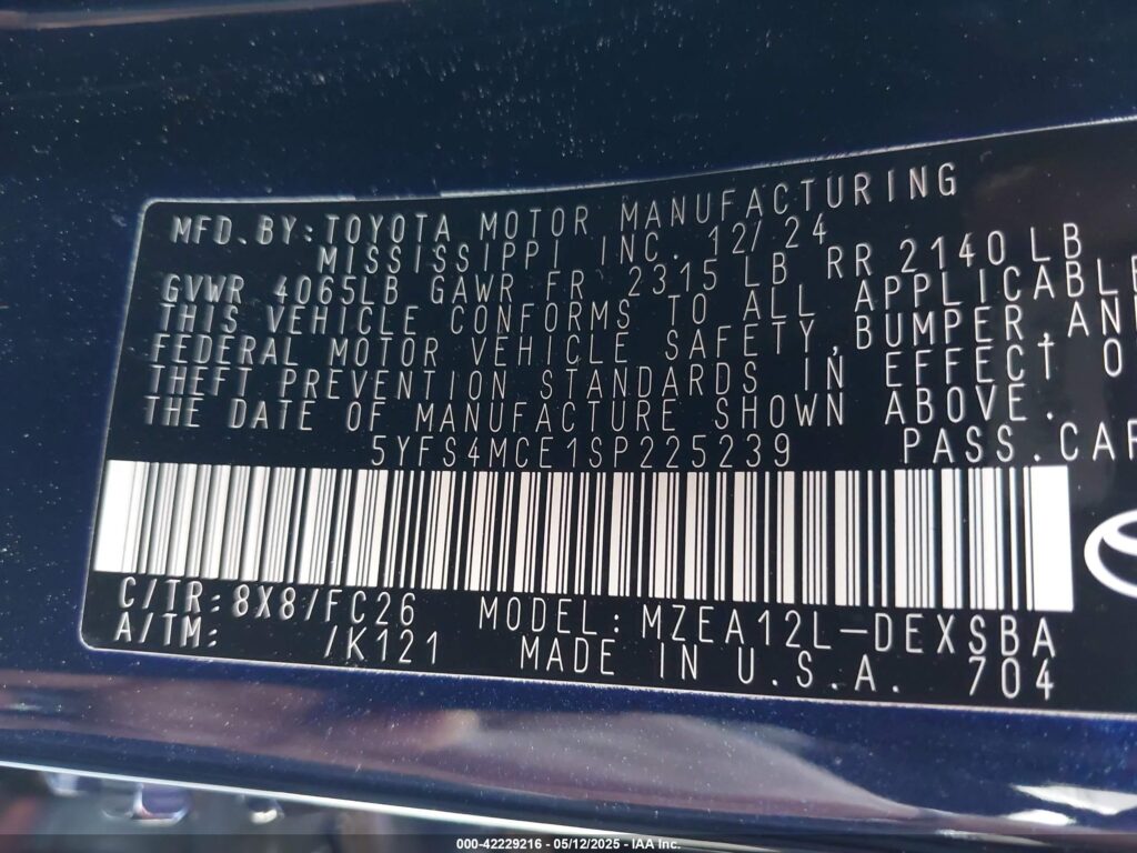 2025 Toyota Corolla – 5YFS4MCE1SP225239
