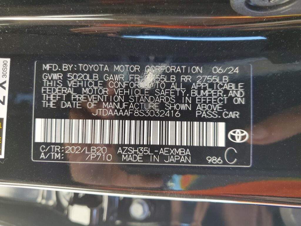 | VIN Number | JTDAAAAF8S3032416 |