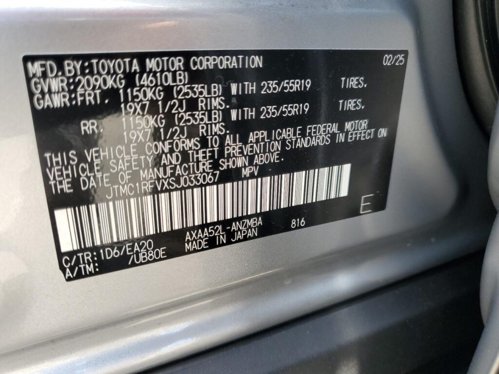 | VIN Number | JTMC1RFVXSJ033067 |