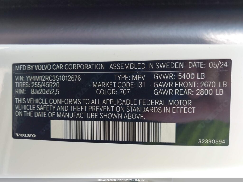 This 2025 Volvo XC60 (White) comes from a major insurance auction in the USA or Canada. All information on this page is linked to the vehicle’s VIN (YV4M12RC3S1012676), which helps confirm where the car was listed and what condition it was in at the time of sale.