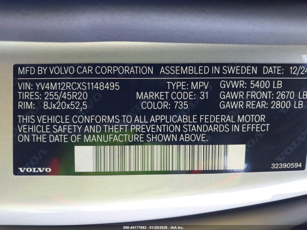 | VIN Number | YV4M12RCXS1148495 |