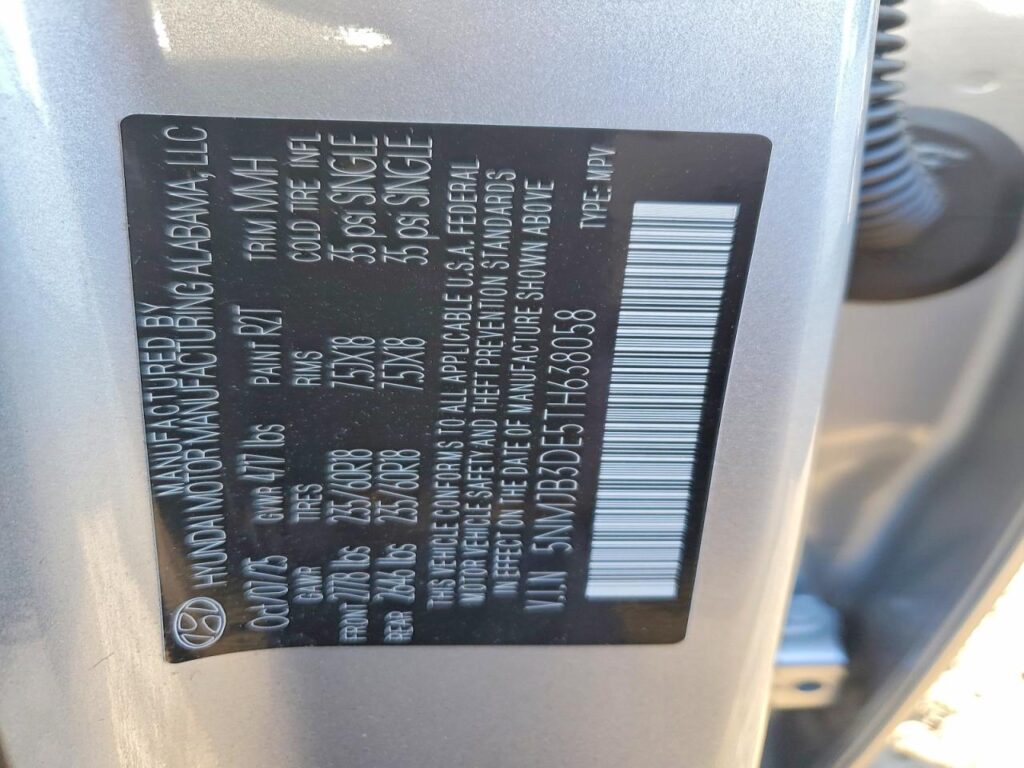 | VIN Number | 5NMJB3DE5TH638058 |