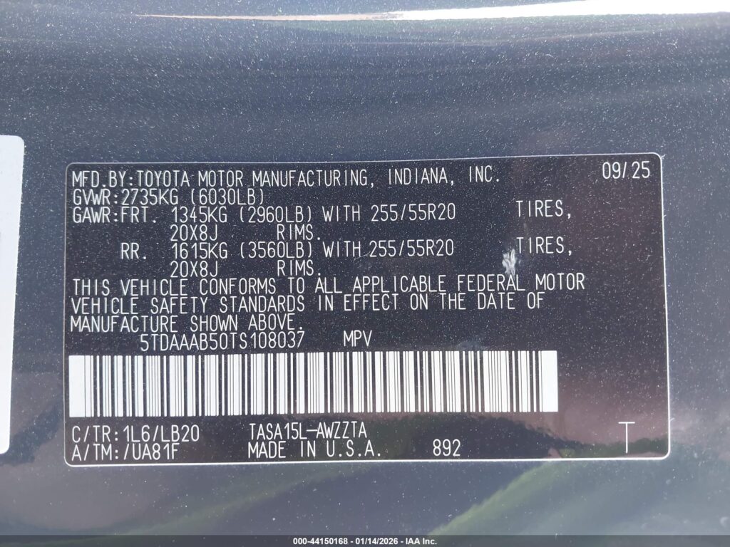 | VIN Number | 5TDAAAB50TS108037 |